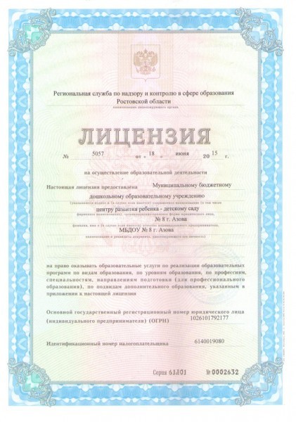 Муниципальное бюджетное дошкольное образовательное учреждение центр развития ребенка — детский сад первой категории № 8 г. Азова |