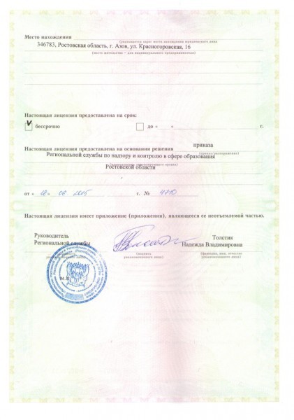 Образовательная деятельность осуществляется по адресу Г. Азов Ростовская область ул. Красногоровская, 16